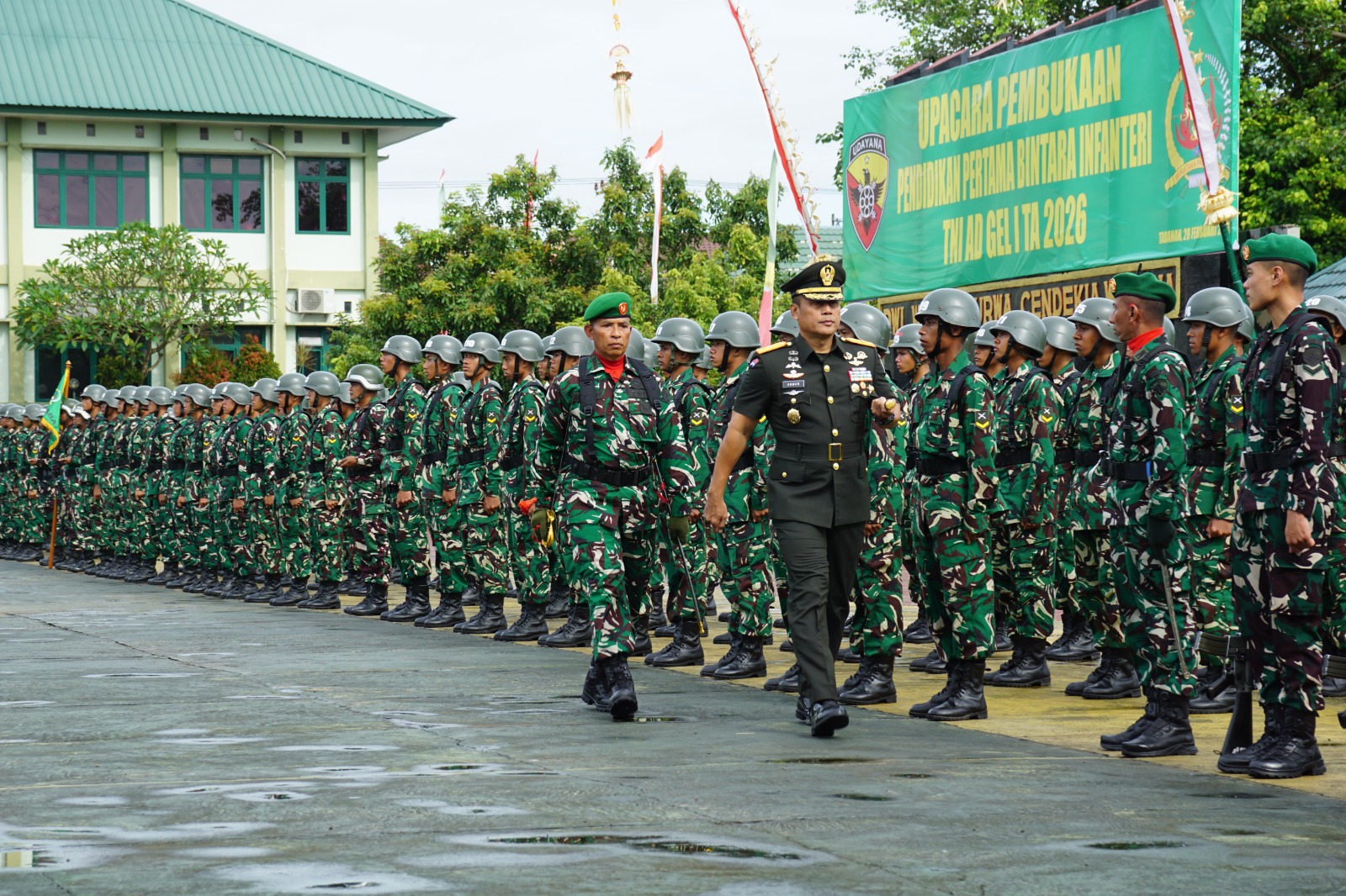 Tabanan, Bali — Pendidikan Pertama Bintara Infanteri (Dikmabaif) TNI Angkatan Darat Gelombang I Tahun Anggaran 2026 resmi dimulai melalui upacara militer di Lapangan Wira Yudha Bhakti, Mako Rindam IX/Udayana, Kediri, Tabanan, Sabtu (28/2/2026).